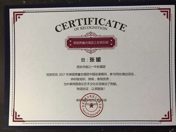 美国男童合唱团首次中国巡演相约曲江一中合唱团献唱古城西安