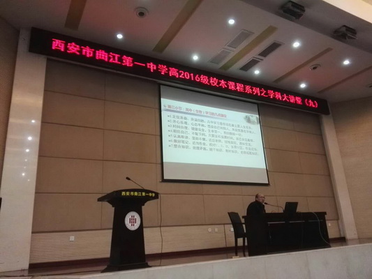 12月24日上午,曲江一中高2019届学科大讲堂活动在报告厅如期开展。我校邀请陕西师范大学生物学博士,现师大附中生物教师宋喜贵老师为全体高一学生做有关生物学科的讲座。