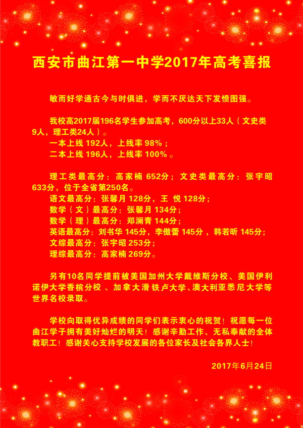 来源:西安市曲江第一中学 作者:学校办公室 时间:2017-06-24 点击:
