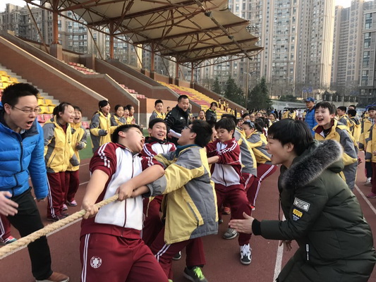 赛场上的队员个个斗志昂扬,用他们的汗水为我们讲述了团结的含义,他们顽强的毅力与拼搏的精神让每一个人感动。啦啦队员个个热情高涨,这里不乏老师们竭尽全力的助威,每一声呐喊都带来一股力量!在最后两局的激烈角逐中,班主任也和学生一起加入了拔河比赛中,整个操场随之沸腾了起来,为寒冷的冬日带来了热情与活力。