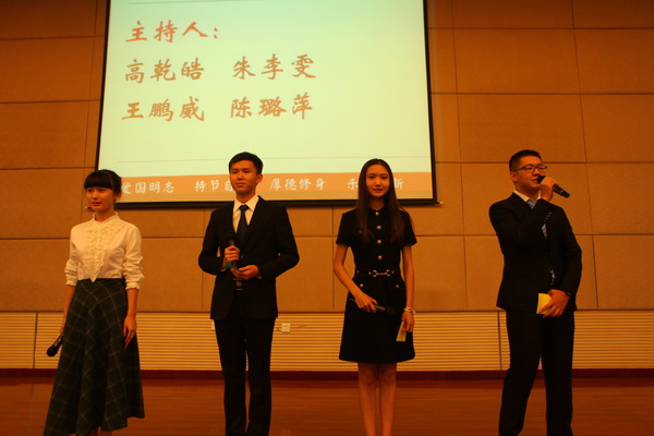 高2018届学生陈璐萍、王鹏威、朱李雯、高乾皓主持本次大赛
