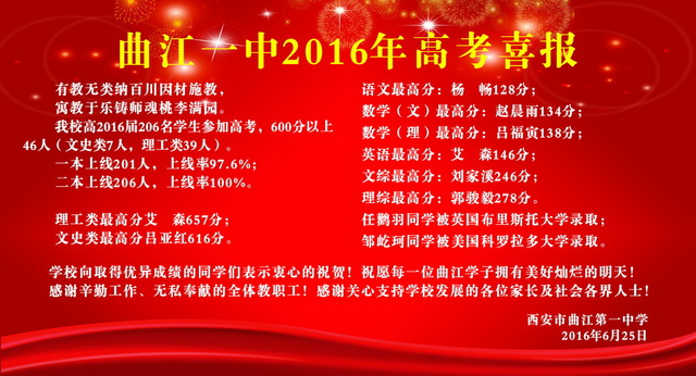 曲江一中2016年高考喜报