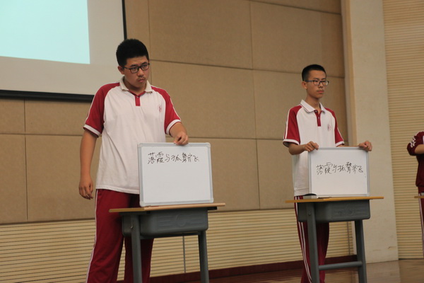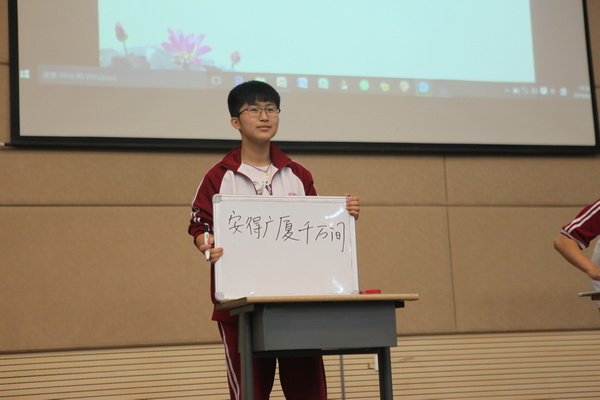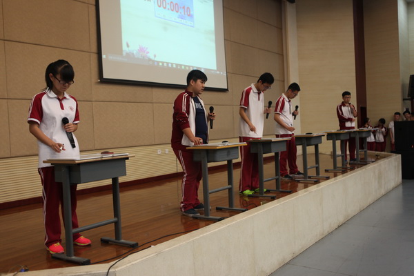 本次比赛由苏岳老师主持,分为四个环节,共有六个班参赛。在简单介绍比赛规则之后,各班同学都跃跃欲试,迫不及待地开始了第一轮比赛的角逐。