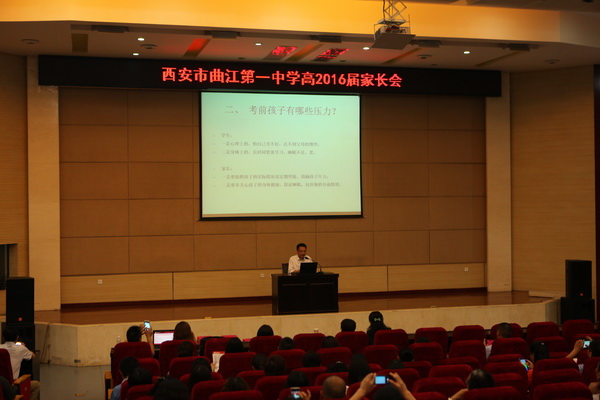 高考在即,如何有效统筹学校、家庭、年级的合力,实现高考冲刺阶段的高效复习,从而取得我校2016年高考的佳绩,是我校高2016届年级组的头等大事。为此,2016年5月18日下午,在西安市曲江第一中学报告厅举行了高2016届家长会。会议由教务处副主任高秋棉老师主持,常务副校长陈勇刚出席了会议,高2016届全体家长参加了本次家长会。