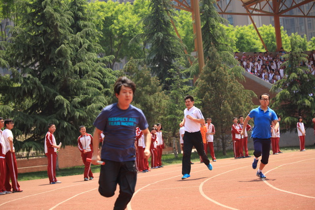 随后,进行了教职工趣味运动比赛。比赛分为4×100接力赛、绕八字跳绳竞速、袋鼠跳和绑腿跑四个项目。赛场上老师们奋力拼搏,引来了同学们的呐喊助威。那阵阵掌声在运动场上激荡着青春的旋律,响彻天地。在这里,人们追逐着运动健儿的矫健身影,感受着青春的活力和拼搏的精神。