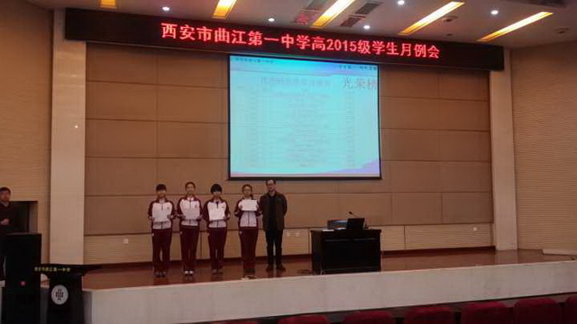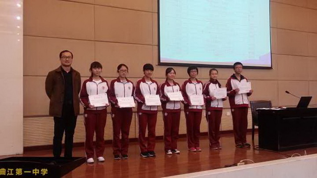 最后,董老师总结了本次考试的成绩,奖励了在考试中进步明显的同学,树立榜样,同时为研究性学习获奖课题颁奖,希望学生在即将到来的期中大考前认真学习,劳逸结合,做一名品学兼优,综合素质强的曲一学子。