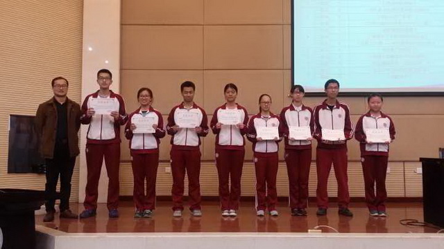 年级组长董锋为研究性学习课题获奖学生颁发荣誉证书