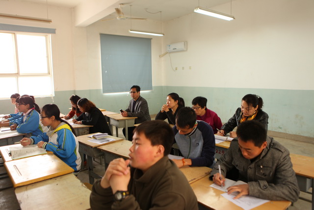 本次交流活动在四位老师的示范课中徐徐拉开帷幕。曲江一中常务副校长陈勇刚、民生希望初级中学校长袁西强、副校长张辉、李争美一起观摩了四位老师的示范课。
