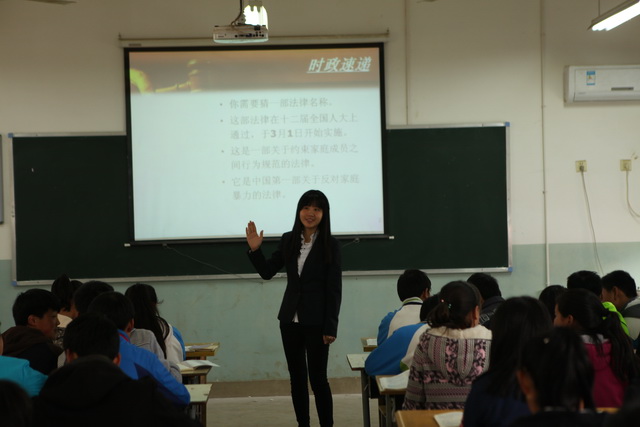 孟丽静老师分享了九年级英语示范课《Task-based Reading Strategy》,她结合城镇学生学情,循循善诱,善于驾驭课堂生成,教法灵活多变,问题设计层次感强,让强者吃好,让弱者吃饱,让学生在语言学习中树立听说读写自信和沟通自信,让学生在历年真题中体验知识自信。李善婷老师的政治示范课《法律专题复习》让人眼前一亮,她结合时事政治速递,让学生感受政治与生活、民生息息相关,通过容易混淆概念的区别和法律知识点的梳理,让抽象的概念更具体,让冗长的法律知识更清晰明了,她善于利用赞美的力量,让学生在赞美声中获取自信,争做一个知法、懂法、守法、护法的好公民。石燕聪老师的语文示范课《综合性学习》,以情制人、以题诱人、情题制胜。通过字、词、句、段、篇的考题练习,告诉学生阅读是最好的美容,自觉培养阅读的习惯是提高幸福指数和人格魅力的关键。白璇老师的数学示范课《两点之间,线段最短》,让平日厌学的学生兴趣高涨,她用最简单的习题导入,用举一反三的系列练习题覆盖课堂,让学生在练习中体验几何图形的魅力,得到学生的喜爱。