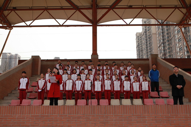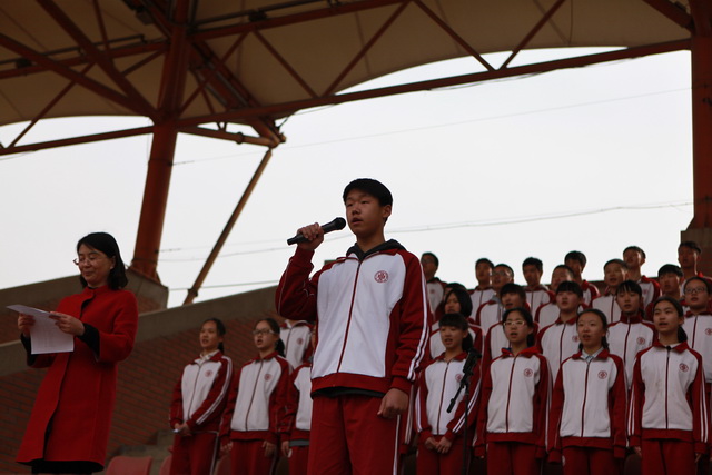高一4班王朋威同学宣读了国旗下的讲话他演讲的题目是《携手并进,共建绿色家园》。春天已经悄然而至,3月12日是一年一度的植树节,严睿桐同学呼吁大家要积极行动起来,把每一天当做植树节从身边做起,做绿化、美化环境的有心人。