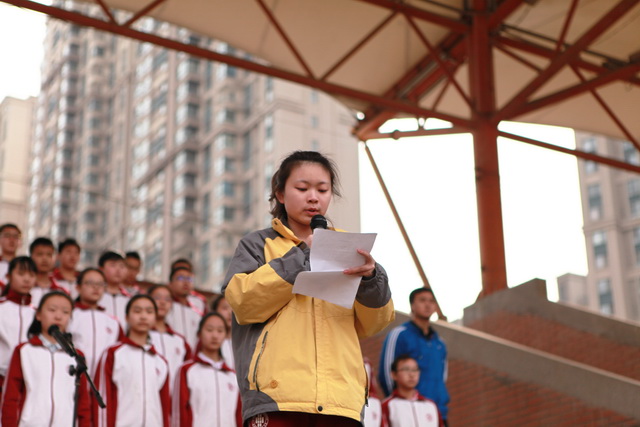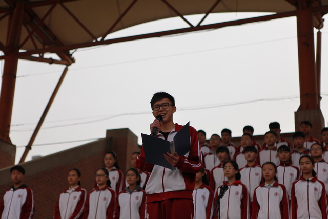 高一4班王朋威同学宣读国旗下讲话——《携手并进,共建绿色家园》