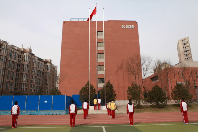 九点五十分,升旗仪式正式开始。伴随着激昂的《义勇军进行曲》,鲜艳的五星红旗徐徐升起,在曲江一中的上空迎风飘扬。