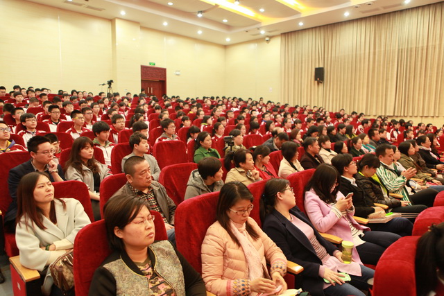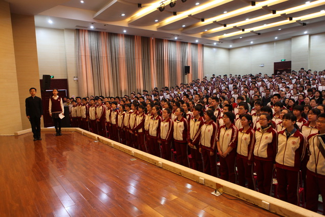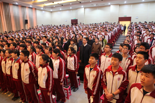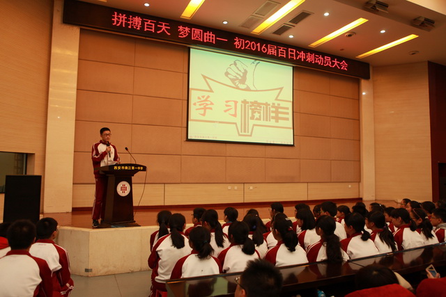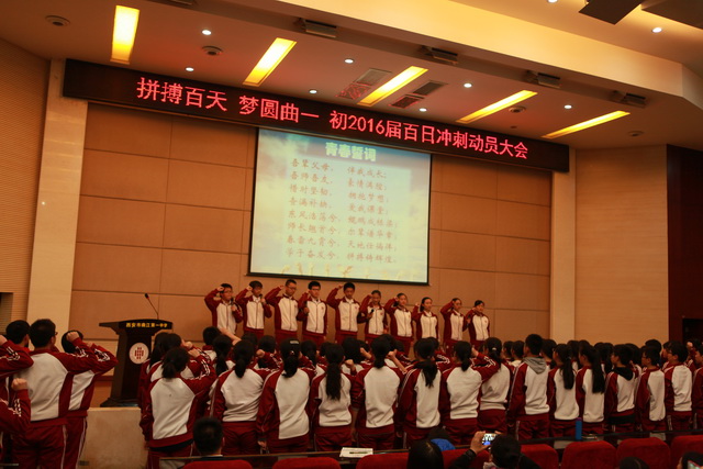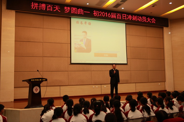 会议在庄严肃穆的国歌唱响中正式开始。首先,曲江一中常务副校长陈勇刚发表了热情洋溢的讲话。他认为,明确目标、坚持不懈、掌握方法是决战中考的三个法宝。谆谆告诫,诚挚祝福,既饱含着校长对学生的激励,也蕴涵着长辈对后辈的期许。陈校长的发言吹响了2016年中考冲锋的号角,全体师生备受鼓舞。