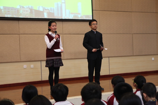 历史教师高文昌和初2016届学生陈昳冰同学主持本次大会