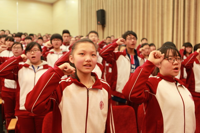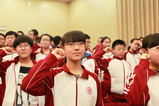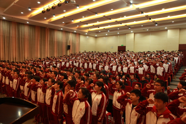 最后,大会在全体同学宣誓中结束。看到初2016届学生和全体教师众志成城、齐心协力,我们有理由相信,6月曲江一中的沃土上定会绽放出最灿烂的花朵。