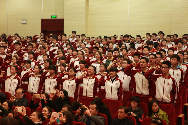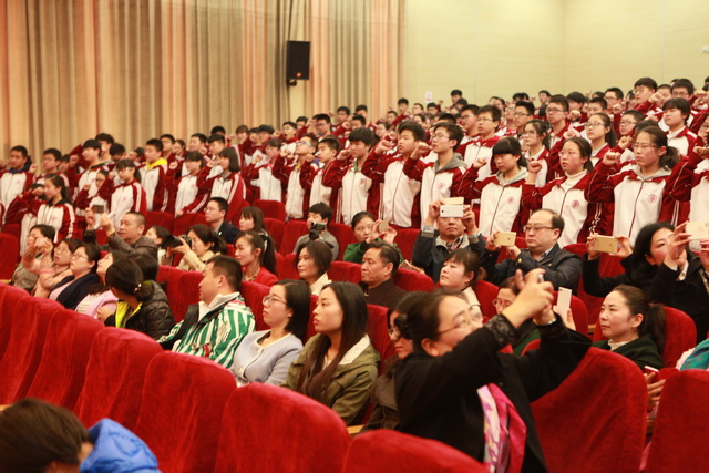教师寄语,家长告白,一幕幕动人的场景既使人们感受到沉甸甸的担当,同时又感受到无穷的支持和期望。周鹤龄女士代表所有家长送上最真挚的祝福,“相信自己”,这沉甸甸的四个字不仅是周女士的亲身经历感言,更是送给所有孩子的金玉良言。随后,初2016届的全体家长分班级为大家摇旗呐喊,送上了最有力量的祝福。在励志奋进和亲情暖暖的氛围中,学子们摩拳擦掌,砥砺前行。
