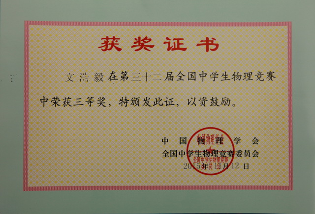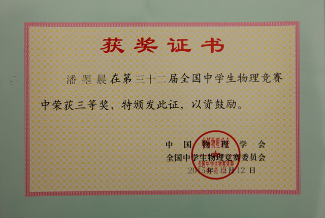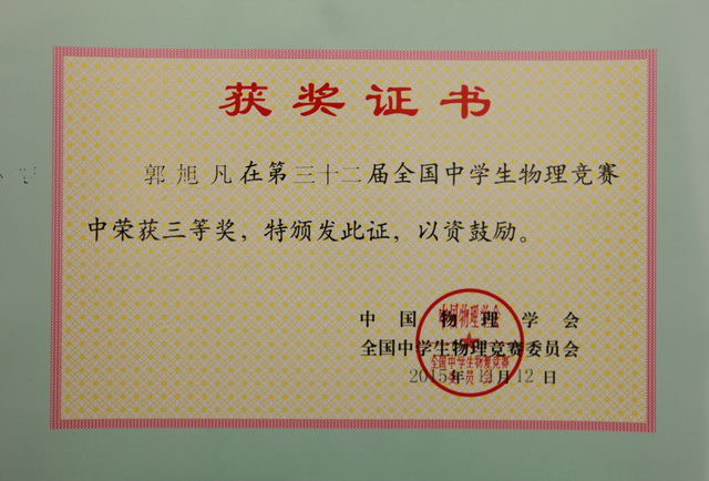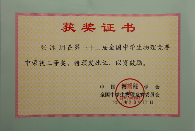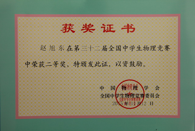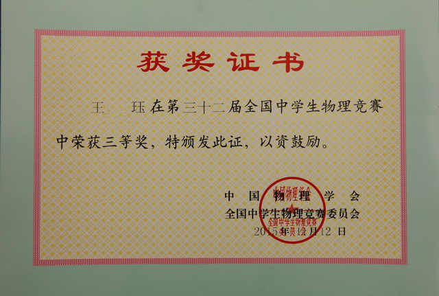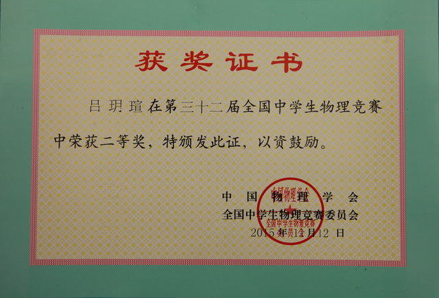 在刚刚结束的第32届全国中学生物理竞赛陕西赛区复赛中,我校共有9名学生再创佳绩,其中获省级二等奖3人,省级三等奖6人。高2016届(3)班赵旭东,宋炜明、(4)班吕玥萱分别获得省级二等奖;高2016届(3)张冰玥,(4)班王俊义,郭旭凡(5)班文浩懿,高2017届(3)班王珏,(4)班潘曌晨,等6名同学分别获得省级三等奖,取得历史性突破。指导教师于静、赵伟、宗彦峰、王宝童特向以上同学和指导老师表示祝贺!