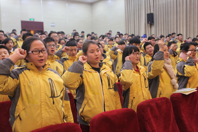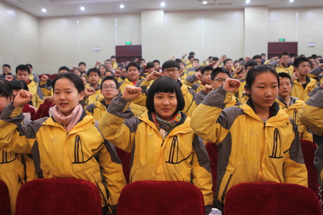随后,初2017级十班同学进行了“勿忘国耻•圆梦中华”的主题诗歌朗诵,而全体同学也高举右拳,在孙静宜老师的带领下发出“铭记历史,缅怀先烈,珍爱和平,开创未来”的庄严宣言,讲座在全场庄重的宣誓声中结束。