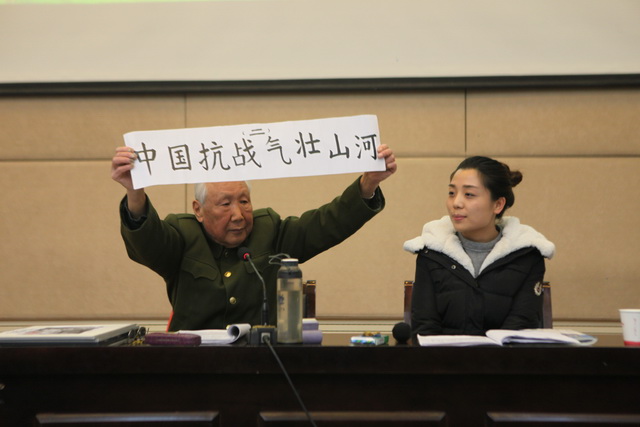 从参加抗美援朝和保家卫国战争的老兵,到兢兢业业的人民教师,杨清源老教授对于如何“避免悲剧重演、实现中华民族伟大复兴”也有着自己的看法。他认为,这一重大任务离不开在校大学生的奋斗。“硝烟弥漫70年,抗战精神永留存”,杨清源语重心长地说:“同学们,中国梦由解放军、科学家和教师们托起,更是由你们托起的。大家正处于生机勃勃的青春,更应该将‘中国梦’与‘我的梦’紧密相连,以艰苦奋斗、百折不屈的抗战精神去实现中华民族的伟大复兴!”