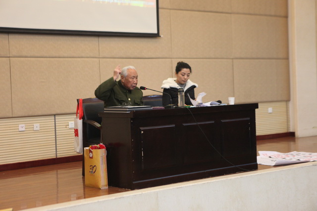 杨清源不仅是陕西师范大学德高望重的老教授,还是一位59年党龄,参加过抗美援朝战争和保家卫国战争的老兵。日寇铁蹄在中华大地上肆略时,杨清源还只是一名十来岁的孩子。然而讲起当年日本侵略者的种种罪行时,这位85岁高龄的老人还是显得激动不已。“那是一段我们都应谨记的历史”,杨清源老人用真实的故事向现场同学们讲述起侵华日军所犯下的累累罪行。除了侵华日军那罄竹难书的罪行,杨清源教授还讲述了“中国抗战”和“弘扬伟大抗战精神”等内容。当讲到“平型关大捷”、“台儿庄战役”等著名战役时,老人家更是激动不已地唱起了“大刀歌”,脍炙人口的抗日歌曲瞬间将现场气氛推向了高潮,全场观众不约而同地打起了节拍。