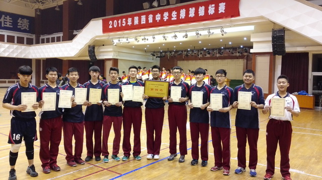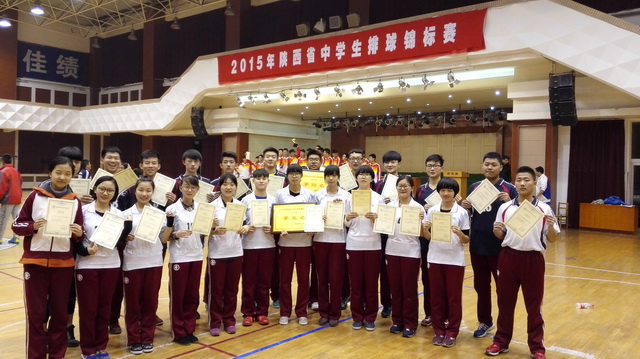 2015年陕西省中学生排球锦标赛,于12月25日下午在西安市第八十三中学顺利开幕。在学校领导的关心支持下,我校共派出男、女各12名队员参赛。我校排球队,在陈勇刚副校长领队,宋吉利、林刚、丁腾飞三位教练员的带领下,经过三天激烈的角逐,我校男队获得第四名,女队获得第五名的好成绩,另有薛奕傲、赵若凡同学获得最佳运动员称号,蔡俊、徐畅获得优秀运动员称号,林刚老师获得优秀教练员称号。在此像全校师生报喜,也感谢学校领导的关心与支持,感谢初三、高一、高二年级组及各班主任老师的支持,感谢林刚、丁腾飞两位老师的辛苦付出,感谢孩子们的刻苦训练和顽强拼搏,感谢体育组老师的关心、帮助与指导。