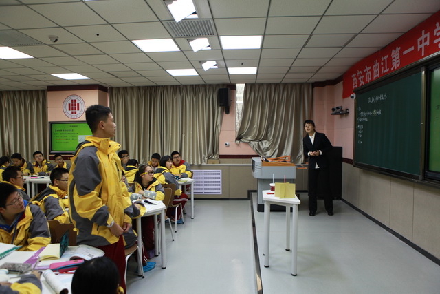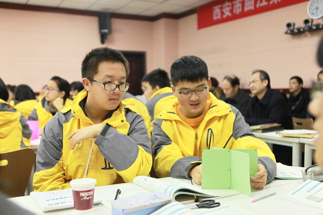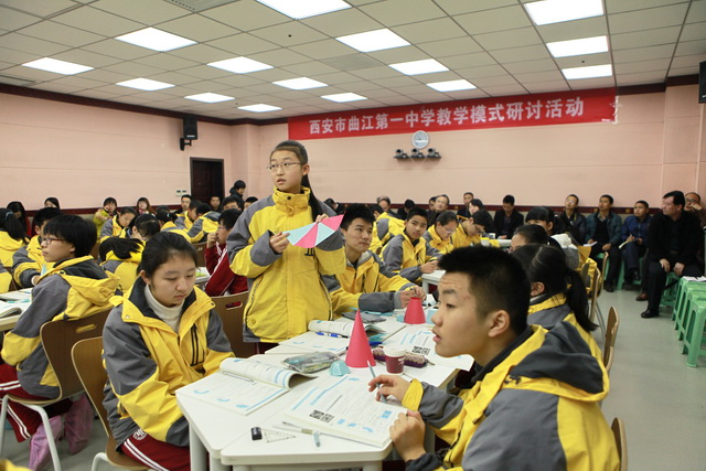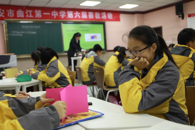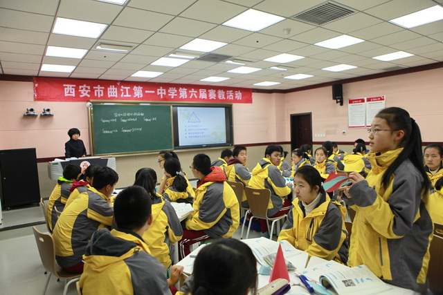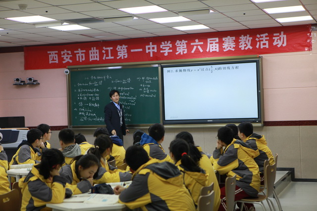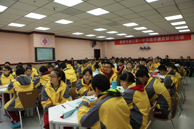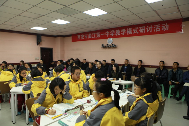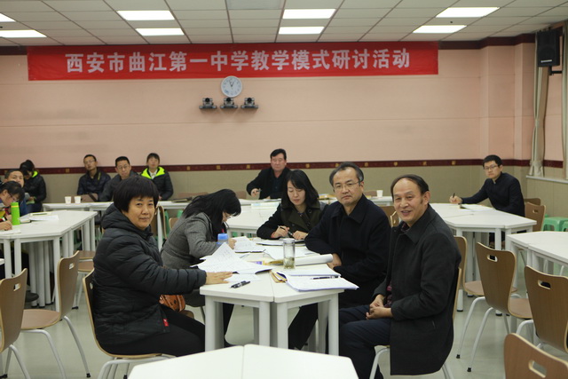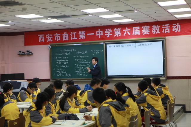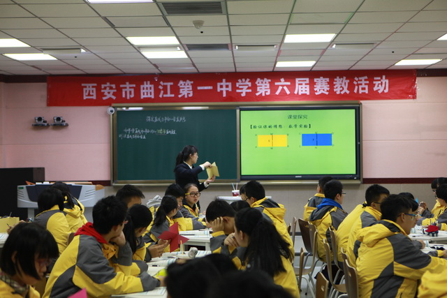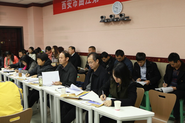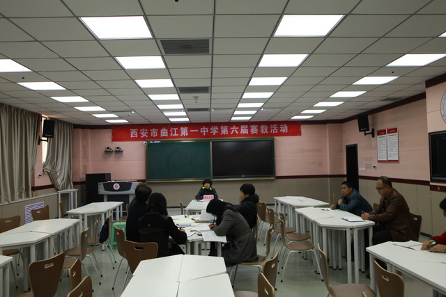 2015年12月7日,我校在录课教室举行了第六届赛教活动高中数学组教师的赛教活动。今天赛教活动特邀西安市教科所数学教研员汪香志老师,西安市曲江第一中学教务处主任朱琳瑛老师,西安市曲江第一中学教研室副主任刘公潜老师,西安市曲江第一中学教务处副主任高秋棉老师,西安市曲江第一中学数学教研组组长魏巍老师担任评委。来自西安市第四十五中的部分数学老师,及我校的部分数学教师观摩了这次比赛。
