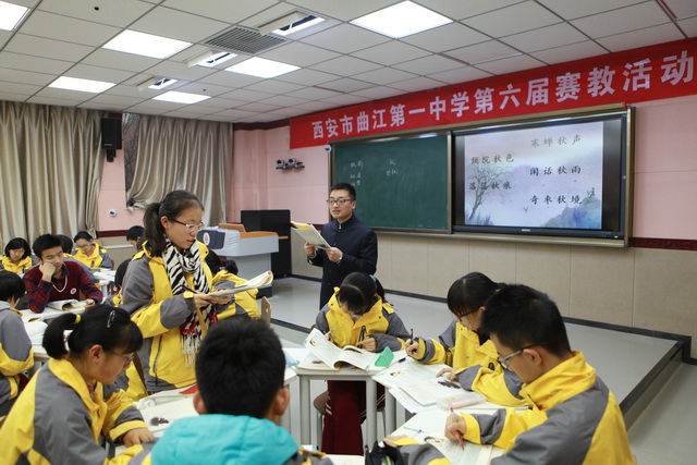 2015年12月8日,曲江第一中学赛教活动(高中组)进入了第二天激烈角逐中。今天的四节课分别来自高一年级的乔亚龙老师和彭玲老师、高二年级的林晓敏老师和高三年级的屈婷老师。四位老师或深情或优雅,或严谨或激情,四种鲜明的课堂风格彰显了语文组精湛的教学技艺和深厚的文学功底,带领大家进行了一场精彩纷呈的阅读之旅。