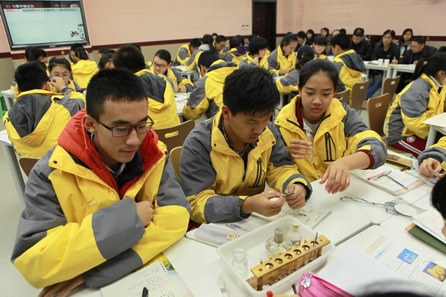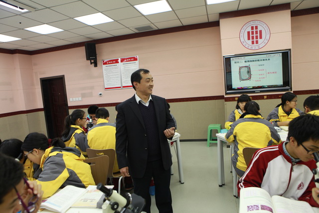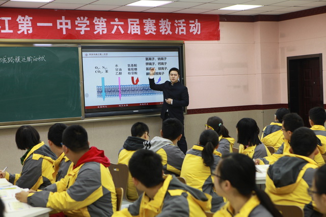 参加此次赛教的老师分别是化学老师曾蓉蓉、王海军,物理老师宗彦峰、王智国,生物老师杨玉龙、谢富瑞。六位参赛老师们采用了形式多样的教学方式让学生感知科学现象,探究未知领域。杨云龙老师用微课导入,让学生们好奇于漏斗中的溶液为什么会上升,关注到细胞的失水和吸水,探究植物细胞的质壁分离和复原现象。谢富瑞老师让学生们通过活动模拟物质的跨膜运输,把微观现象变宏观,既丰富了课堂氛围,也加深了学生们对跨膜运输方式的理解。曾蓉蓉老师用实例吸引学生关注金属的电化学腐蚀现象,并通过小组合作学习的方式探究其中的原理,并利用所学尝试解决生活中的问题。王智国老师从物体的平衡状态出发,利用牛顿运动定律解决物体运动问题,并引导学生探究失重和超重的奥秘。“铝超标”这一吸引人眼球的内容,让学生关注到铝这种金属,王海军老师在引导学生分析铝的化学性质,并通过实验探究为什么铝能与强酸强碱发生反应。宗彦峰老师的《电磁感应中的单棒问题》虽然是节复习课,但他并没有只让学生单纯做题,而是在引导学生总结知识点的基础上穿插技能的训练和提升。