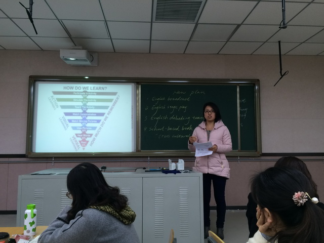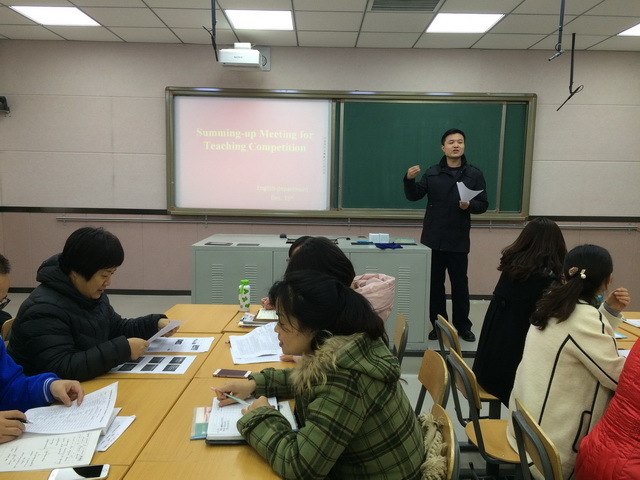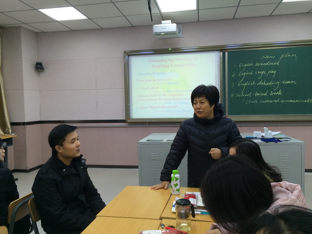 赛教的圆满结束也为2015年英语组教研活动添上浓墨重彩的一笔。张老师强调,新的一年里,在扎实推进教学的同时,也要致力探索开发多种具有英语特色的校本课程和活动。具体包括建立校园英语广播站、编排英语经典话(戏)剧、创办英语辩论社团和编纂以跨文化交际为题材的校本教材。发挥老师们的专业特长,为学生架设更多开拓视野展示风采的平台。