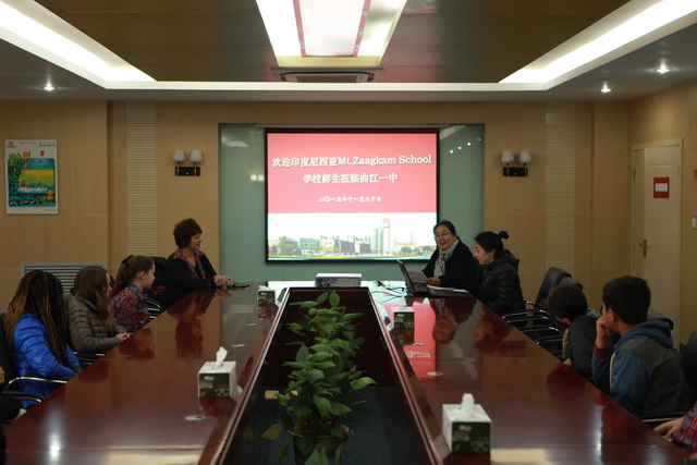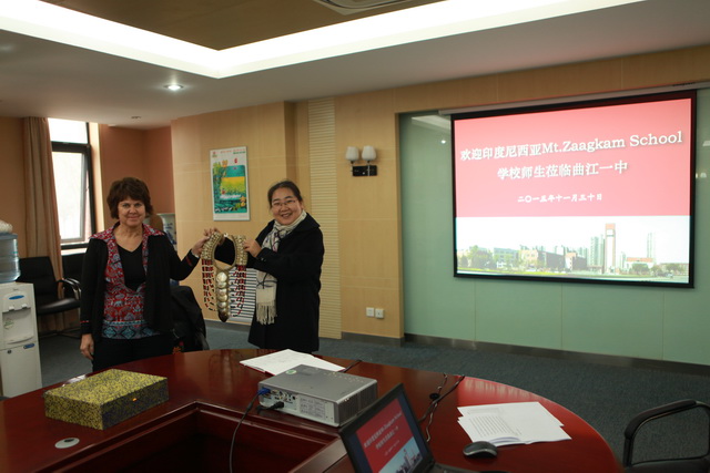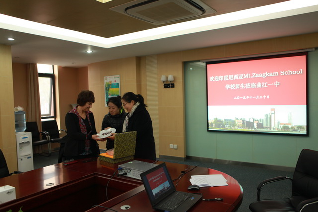 MT.Zaagkam School教师代表向曲江一中赠送纪念品