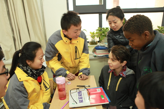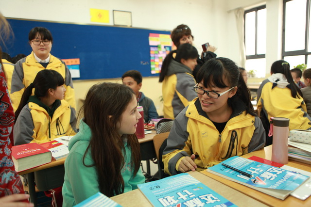 大课间与高2017届1班同学进行“English corner”交流