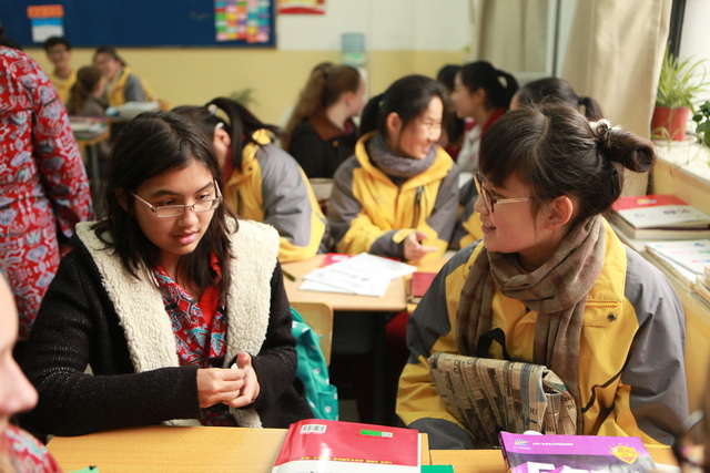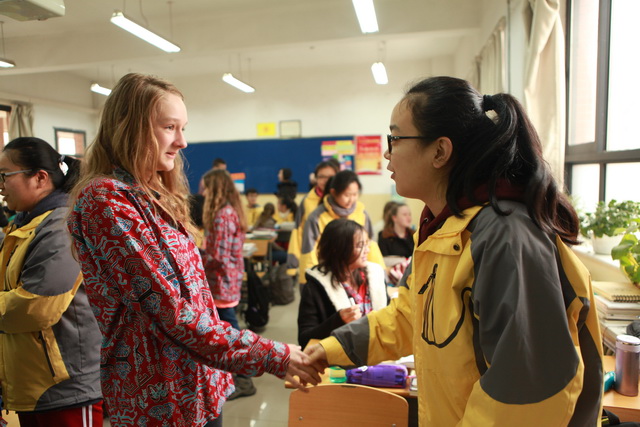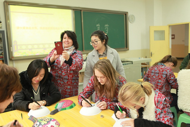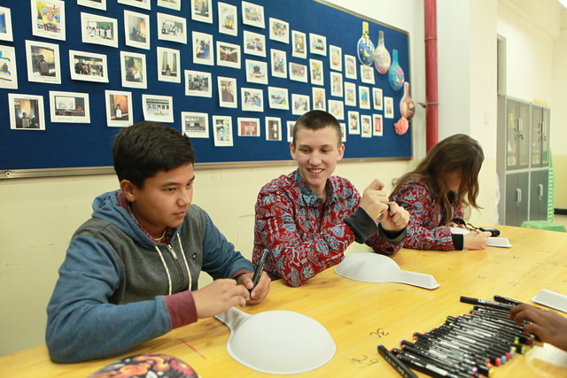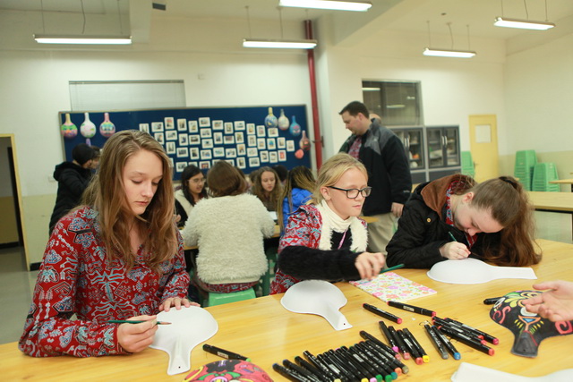 首先,在学校会议室,MT.Zaagkam School师生一行观看了我校基于学生视角拍摄的宣传片,随后余主任代表学校对远道而来的MT.Zaagkam School师生一行表示欢迎并发表了热情洋溢的欢迎辞,接下来,MT.Zaagkam School学校带队教师简单介绍了MT.Zaagkam School,学校规模不大,主要的学生都是来自世界各地的国际生,每年都会有形式多样的游学活动,此行来访中国西安、北京主要为体验中国古老的历史及悠久的文化而来。之后,余主任代表学校为MT.Zaagkam School学校送上了我校学生绘制的中国盘子,并接受了对方极具印尼部落风情的回赠礼物。之后,学生们在学校校办干事孙晓珍的带领下参观了我校的功能部室,在课间休息时间,学生们走进高二一班教室,与中国的大哥哥大姐姐们分享各自不同的校园生活乐趣。在体育馆,体育老师项红为学生们呈现了精彩纷呈的太极拳,在美术教室,美术教师张梦玥带领学生一起描绘中国特有的马勺,两位老师的课程融合中国传统文化元素,丰富有趣,让这些远道而来的学生赞不绝口,意犹未尽。