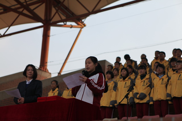 高三年级6班王警瑶同学宣读了国旗下的讲话,她代表高三年级同学,表示出了积极备战高考的决心,将坚韧、执着地踏出每一步,用奋斗与拼搏摘取成功的果实!高二年级1班王语嫣同学宣读了第九周检查结果,学生会纪检部王乐璇同学宣读了对值周班级监督检查结果。