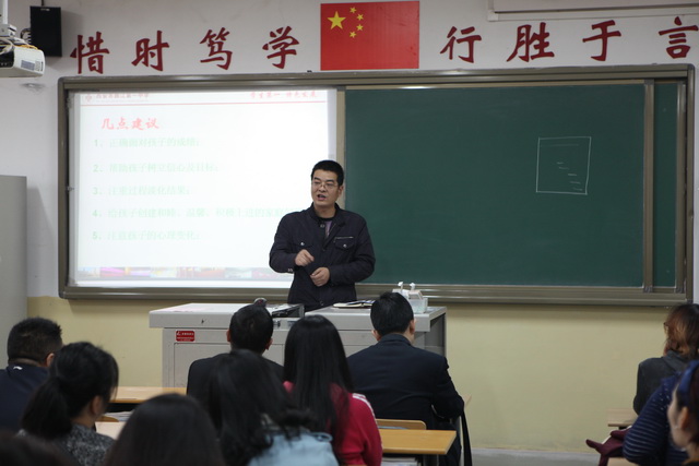 学校教研室副主任刘公潜则分别从家庭在教育中的重要作用、孩子的未来引导及如何配合学校教育的三个方面与家长们推心置腹。谁言寸草心,报得三春晖。刘老师的真诚讲话打动了在座的拳拳父母心,与会家长纷纷表示,将在以后的生活中与学校积极交流,为学生的成长和发展协同努力,互助促进。