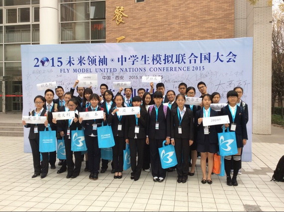 2015年10月23日至25日,由陕西联合国教科文组织协会、曲江新区管委会教育卫生局、曲江青少年文化活动中心和西安市高新一中联合主办的FLYMUN 2015未来领袖中学生模拟联合国大会在高新一中国际部胜利召开,本次大会共有来自省内的20余所中学、400余名优秀的学生代表参与。我校模联社团26名学生在指导教师孙晓珍的带领下参加了此次大会。