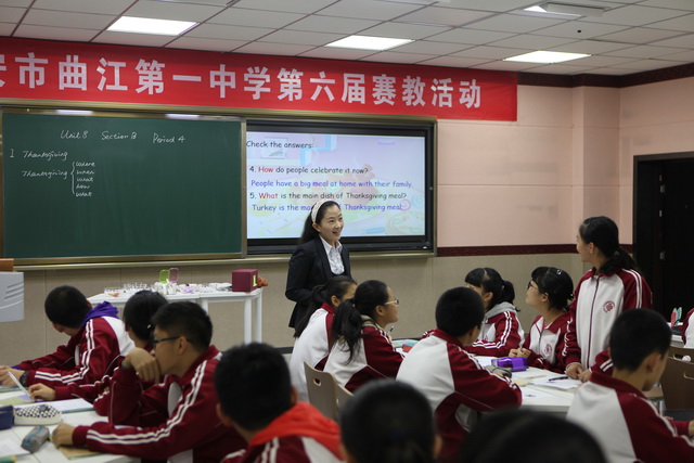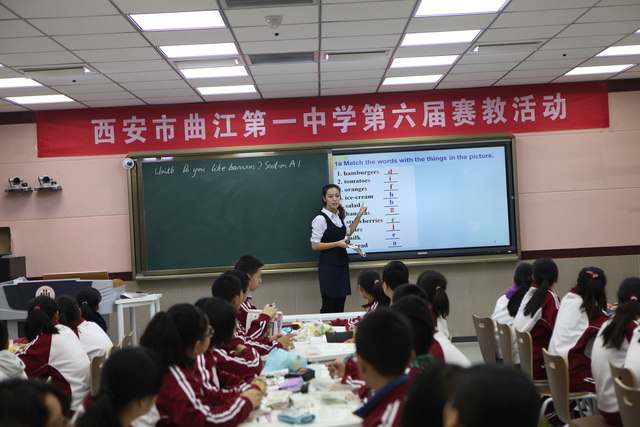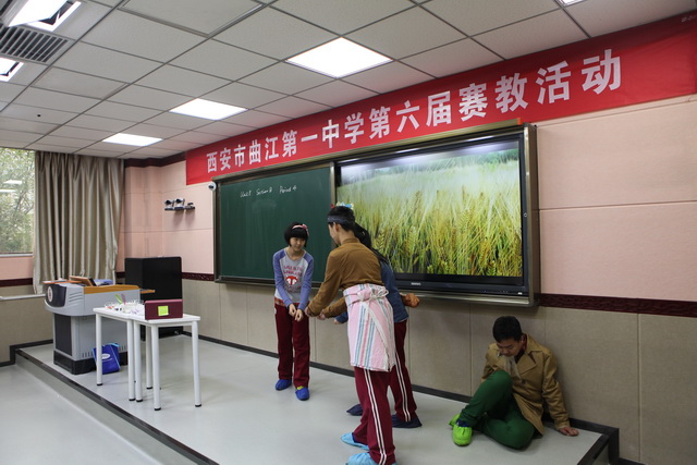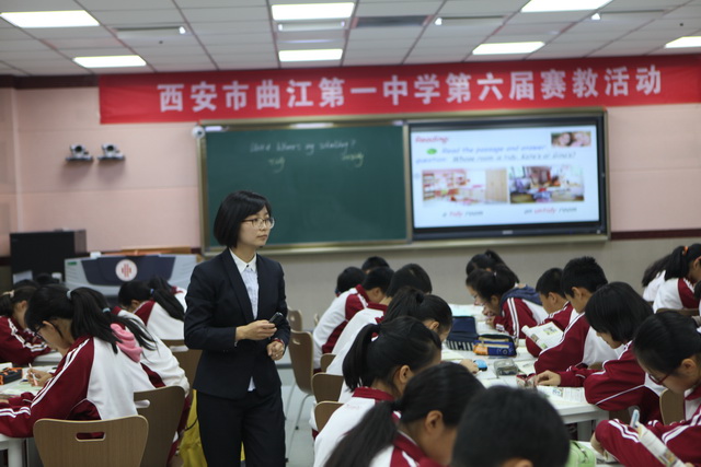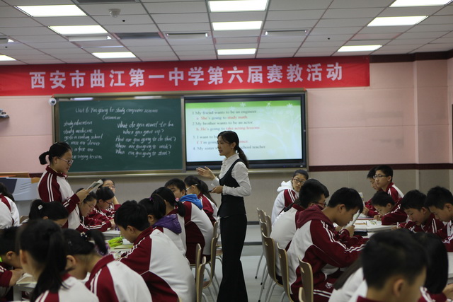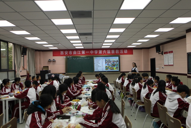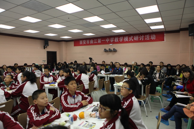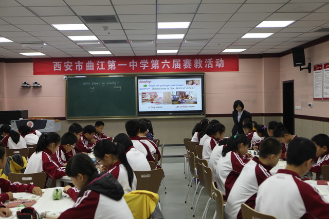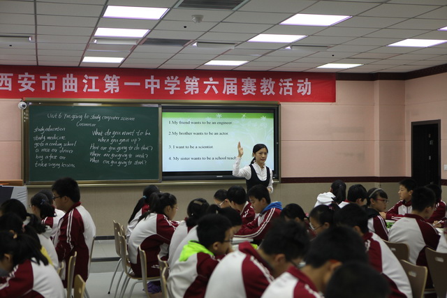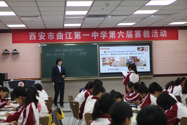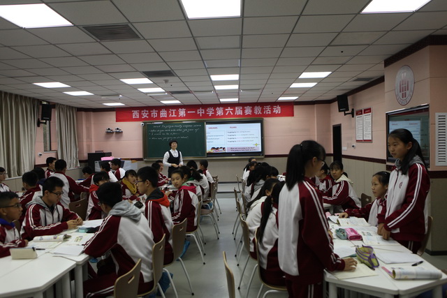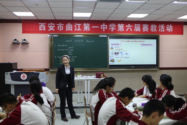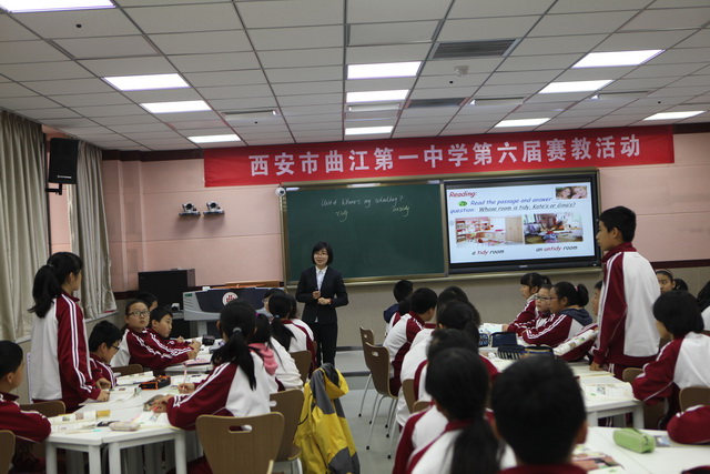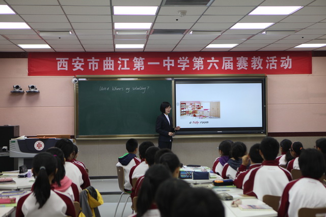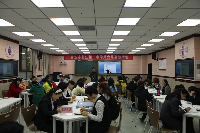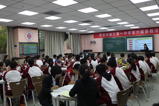 2015年10月28日,曲江一中第六届赛教活动(初中组)进入第三天的激烈角逐中。本次比赛特邀陕西师范大学段亚绒教授、雁塔区英语教研员袁晖老师、曲江一中英语教研组长张亚权老师以及陕西省教学能手李新定老师担任评委。安康市汉阴县漩涡初级中学、石泉县城关中学、石泉县后柳中学、石泉县池河中学、西安市第四十五中的部分英语老师以及我校的全体英语教师观摩了本次比赛。