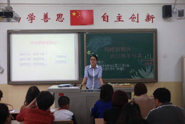 随后,家长们纷纷进入了孩子们所在的班级,参加各班举办的家长会。班主任们从“小学到初中的转变”、“开学三周的情况 ”、“班级的管理”、“给家长的几点建议”、“学校的要求” 和“家长委员会”等方面向家长们介绍了班级的具体情况。随后,任课教师到教室同家长进行交流,介绍学科课程的相关要求,并细心听取家长的意见。