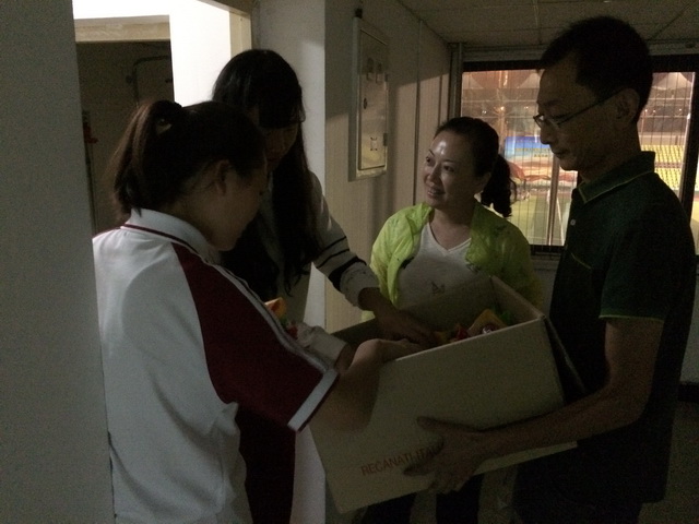 王主任向寄宿生发放中秋月饼