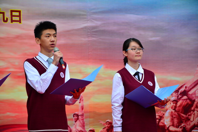 合唱比赛在教师代表队铿锵有力的《国歌》中拉开序幕,《松花江上》以及《解放区的天》,让大家重温了记忆中的的抗战经典歌曲。随后登台的学生代表队用饱满的热情、嘹亮的歌声、扎实的演唱功底、整齐的着装、朝气蓬勃的精神面貌歌唱了《歌唱祖国》《红旗飘飘》《黄河大合唱》等经典曲目,歌颂了中华民族万众一心、抵御外来侵略者的伟大抗战精神,抒发了为实现民族复兴的中国梦而发奋努力的壮志豪情,也展现了我校学生强烈的爱国热情和积极进取、昂扬向上的精神风貌。激昂的歌声和不时爆发出的阵阵掌声,将比赛一次次推向高潮,操场化身音乐的海洋,抗战歌曲响彻云霄。