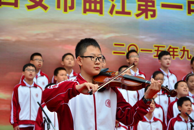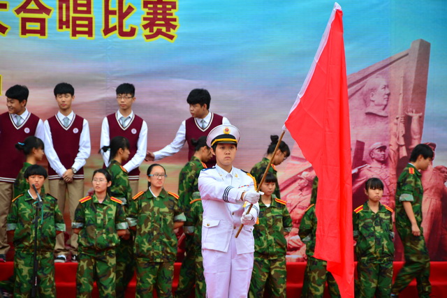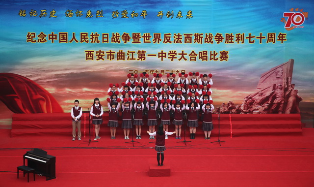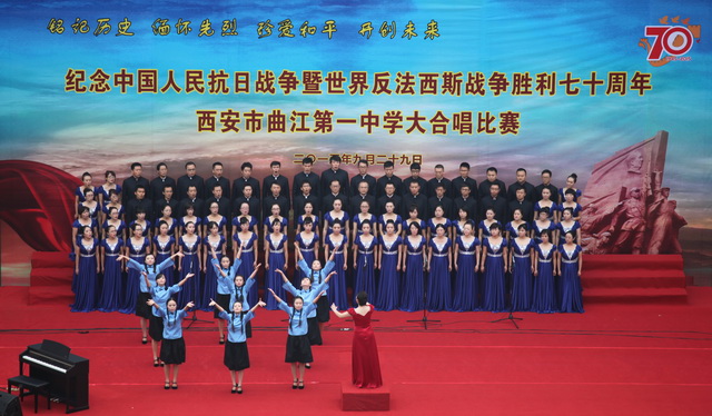 曲江一中举行纪念“迎国庆向国旗敬礼”暨中国人民抗日战争世界反法西斯战争胜利七十周年大合唱比赛