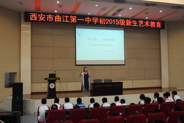 8月27日下午2点半,伴着一阵阵美妙的歌声,由曲江一中音乐教师黄晨老师主讲的“学生第一,特色发展——让艺术之花开遍大曲一”的艺术教育讲座在报告厅热烈举行。