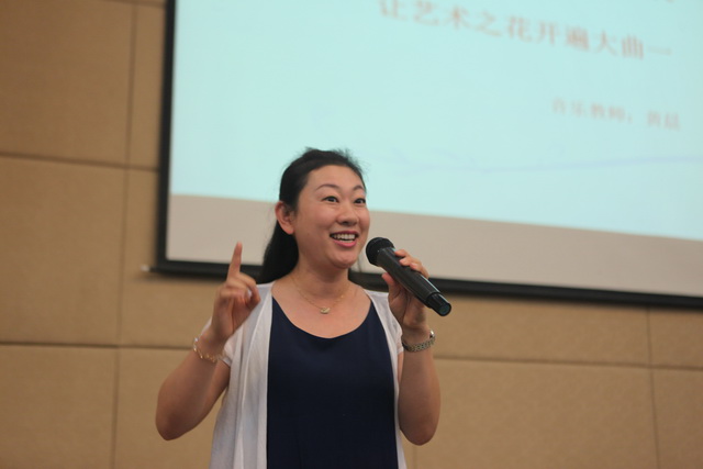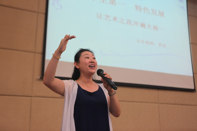 音乐教师黄晨做“让艺术之花开遍大曲一”专题报告