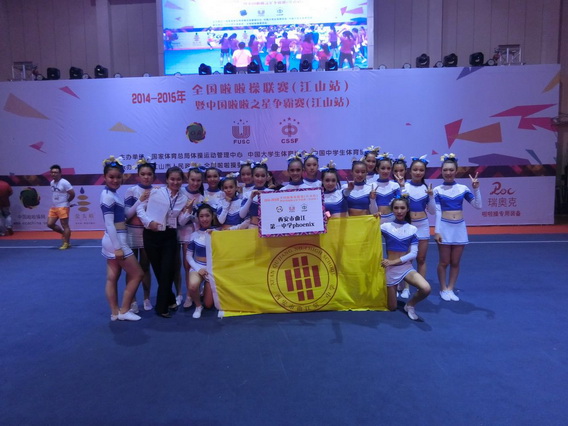 2015年6月25日-28日,由国家体育总局体操运动管理中心、全国啦啦操委员会和教育部体卫艺司等单位联合主办的2015年全国啦啦操联赛暨中国啦啦操之星争霸赛(江山站)在浙江省江山市举行。我校啦啦队以优异的表现荣获啦啦操中学组花球(自选)第一名,花球(规定)第二名。