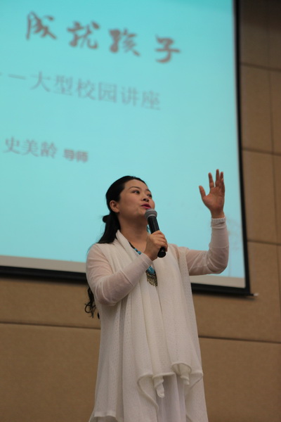报告中史美龄导师指出,幸福家庭成就孩子有三大关键——从孝敬父母开始,从和谐夫妻做起,成为智慧型父母。其中,史老师重点跟家长们交流了如何成为智慧型父母,她围绕“青春期的孩子怎么沟通、怎么引导、怎么立志”这一话题,列举了家庭在教育孩子过程中所存在的困惑及问题,并结合生活实例教给家长们一些行之有效的方法,极具感染力和说服力,赢得在座家长的阵阵掌声。