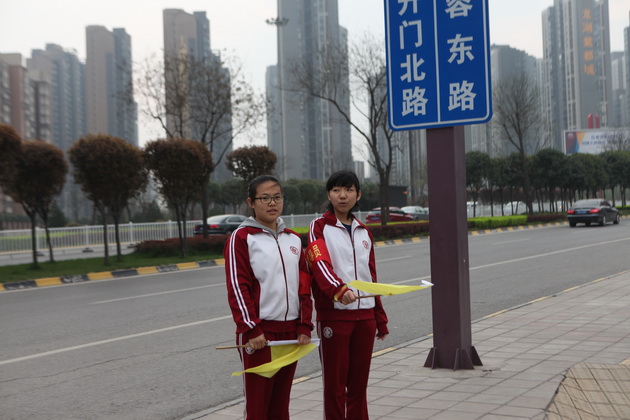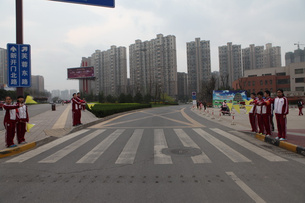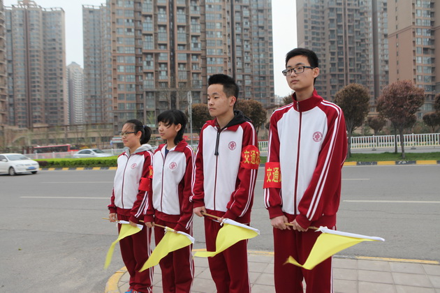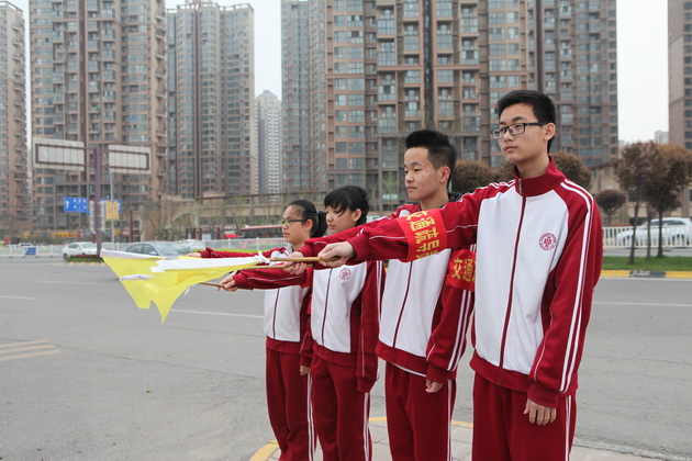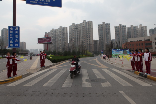 2015年3月31日至4月1日我校高2017届一班10位同学成为校门口的“交通疏导员”。他们戴着红袖章,举着小黄旗,每天7点准时在学校门口作起了过马路行人的“安全保卫员”。一面面黄旗飘起,一辆辆汽车减速,一路保卫行人安全、维持交通秩序的小纵队开始工作,成为了曲江一中门前独特的风景线。每当有行人准备过马路时,他们就举起黄旗示意车辆减速慢行,为行人创造出一条“安全通道”。尽管许多驾驶员在第一天并没有领会挥旗的意图,在校门口也没有减速慢行礼让行人,但第二天大多数车辆都能够在指挥下减速慢行。看着车辆有秩序地通过,礼让行人,疏导员们也意识到了这项工作的价值—帮助驾驶员们形成一种校门口减速慢行的意识,从看见旗帜减速到自觉减速。