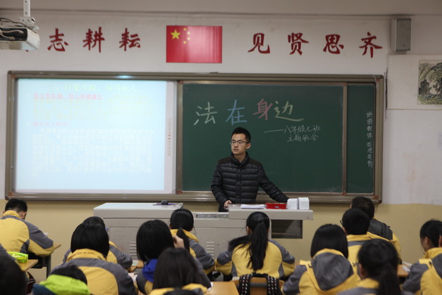 为了增强学生的法律意识,加强未成年人的思想道德建设,杜绝学生的不良行为,让他们远离违法犯罪。2015年3月9日曲江一中初2016届各班召开了“法在身边”主题班会。