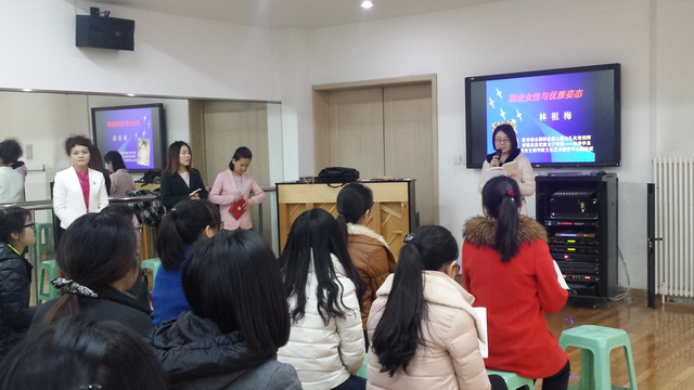 2015年3月6日下午4点,校工会特邀请教育部全国核心能力礼仪培训师—林祖梅教授在舞蹈教室为我校女教师带来了一场以“魅力女人,优雅仪态”为主题的精彩讲座。本次讲座主要介绍了正装穿着规范、站姿禁忌、优雅坐姿变化及禁忌、得体的蹲姿等丰富的职场礼仪知识。
