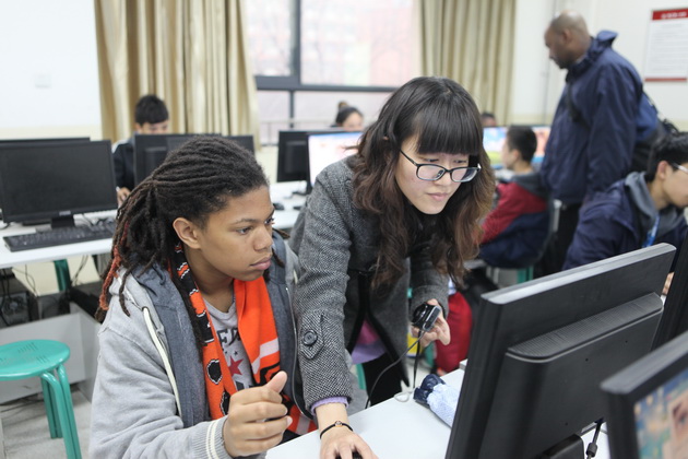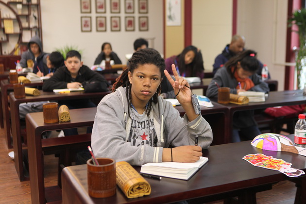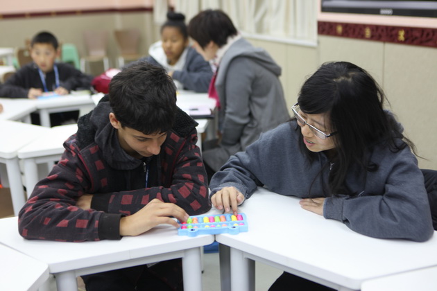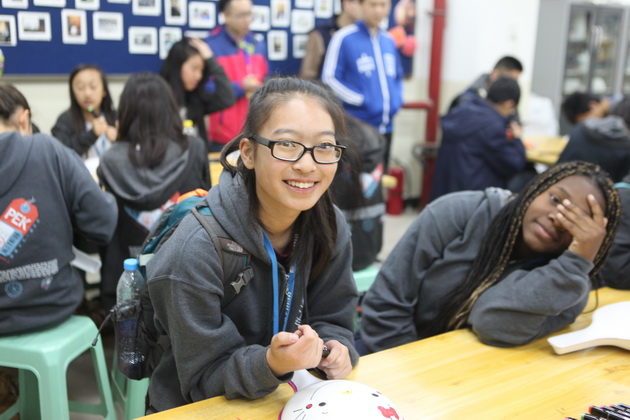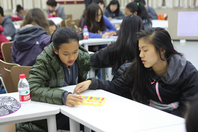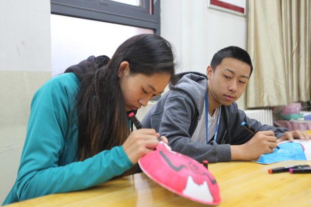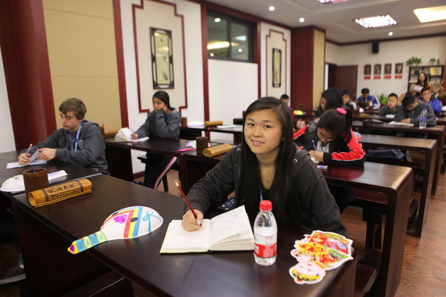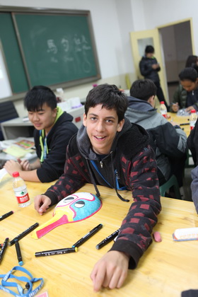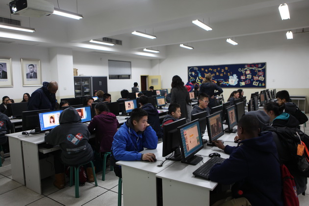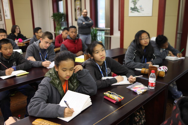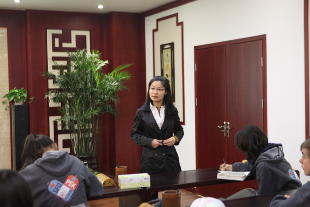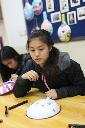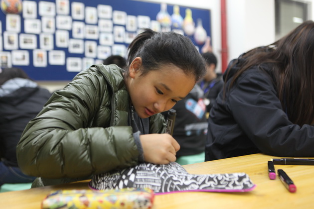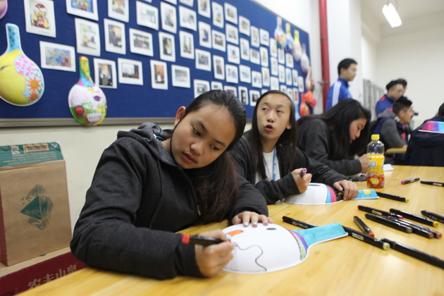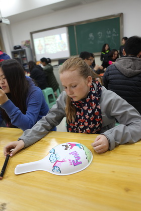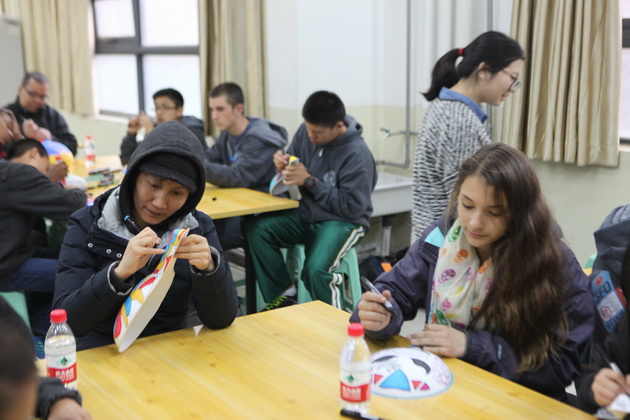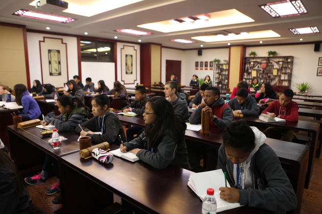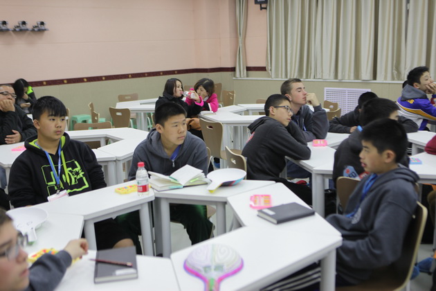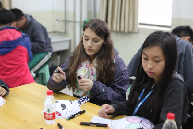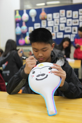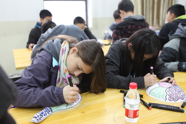 早上8点,师生们就开始了紧张而又精彩的特色课程学习交流之旅。我校为交流学生安排了民间马勺、陕西文化、太极拳、Amazing Mito xiuxiu、珠算、篮球友谊赛等带有浓郁中国风的开放式特色课。在课堂上,学生们积极踊跃地与各位特色课老师进行互动交流,感受中国传统文化以及西安这座历史古都所带来的震撼。马勺课上,张梦玥老师对马勺的起源作了生动讲解,配合社火的视频让学生们直观的了解到这种民间工艺的内涵,然后指导学生发挥各自想象力动手绘画,使得学生更加深入地理解了马勺这种民间文化的历史渊源和制作特点;陕西文化课上,赵静老师通过动感的视频欣赏带领同学们了解陕西,走进西安,不胜枚举的旅游景点、以及“陕西八大怪”等独具地方特色的文化给同学们留下了深刻的印象;太极拳课上,项红老师激情洋溢的讲授让学生们在互动中兴奋不已,并对中国功夫产生了浓厚的兴趣;Amazing Mito xiuxiu课上,冯超老师向同学们介绍了美图秀秀这款国产图片处理软件所独有图片特效、美容、边框、场景、拼图等功能;珠算课上,梁瑞静老师向同学们展示了中国传统的计算工具--算盘的使用规则与方法。各位老师精彩十足,独具特色的讲授得到了美方全体师生的高度赞扬。下午最后一节课,我校学生与美方学生进行了激烈的篮球友谊赛比拼,大家在紧张激烈而又趣味无穷的比赛中增进了彼此间的友谊。