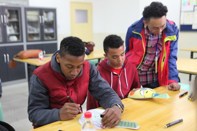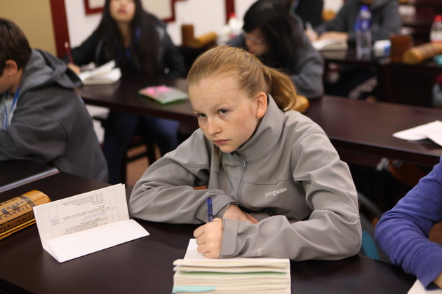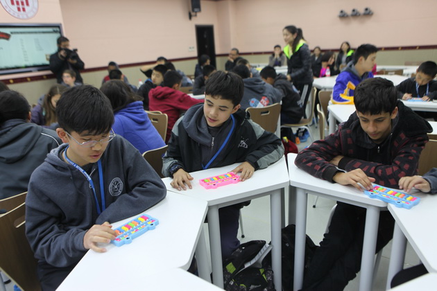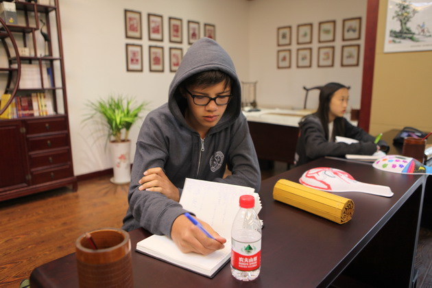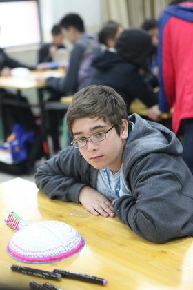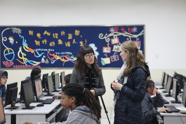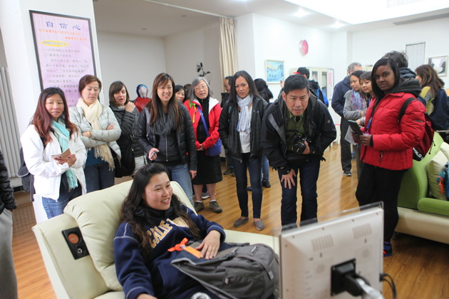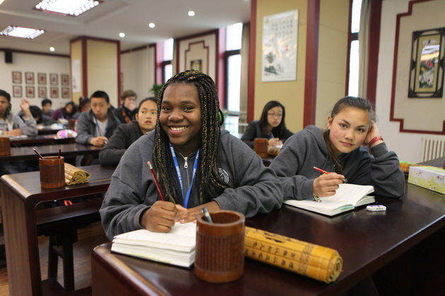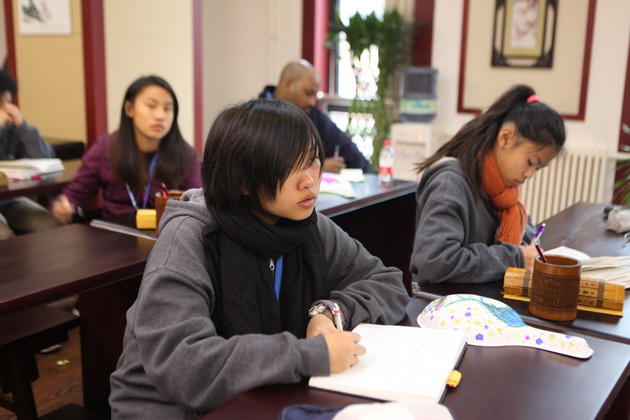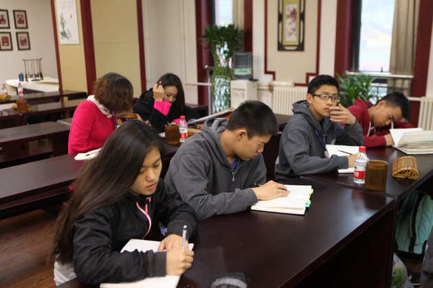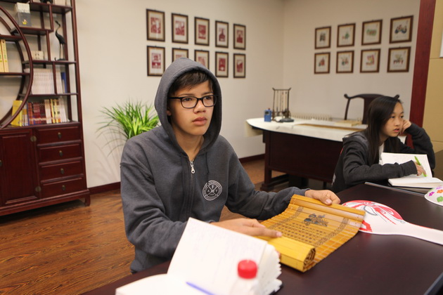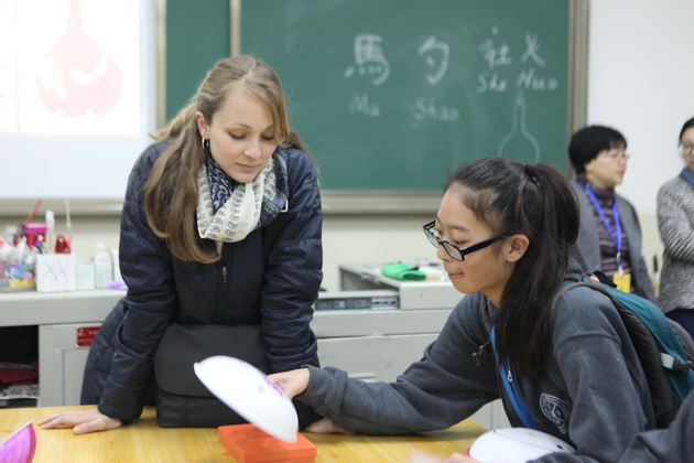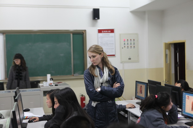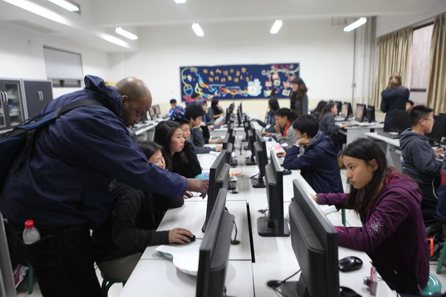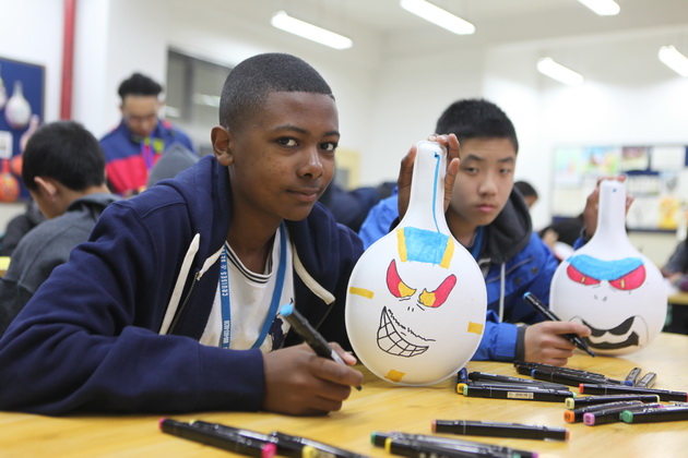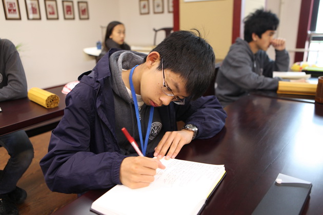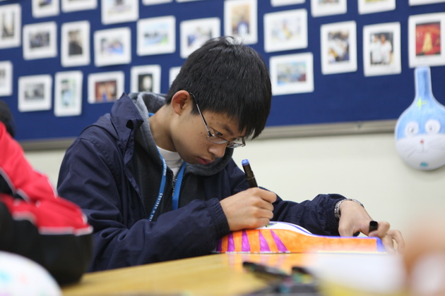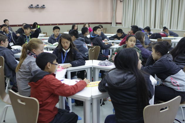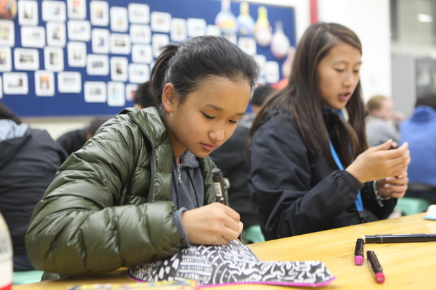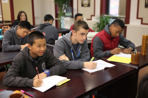 早上8点,师生们就开始了紧张而又精彩的特色课程学习交流之旅。我校为交流学生安排了民间马勺、陕西文化、太极拳、Amazing Mito xiuxiu、珠算、篮球友谊赛等带有浓郁中国风的开放式特色课。在课堂上,学生们积极踊跃地与各位特色课老师进行互动交流,感受中国传统文化以及西安这座历史古都所带来的震撼。马勺课上,张梦玥老师对马勺的起源作了生动讲解,配合社火的视频让学生们直观的了解到这种民间工艺的内涵,然后指导学生发挥各自想象力动手绘画,使得学生更加深入地理解了马勺这种民间文化的历史渊源和制作特点;陕西文化课上,赵静老师通过动感的视频欣赏带领同学们了解陕西,走进西安,不胜枚举的旅游景点、以及“陕西八大怪”等独具地方特色的文化给同学们留下了深刻的印象;太极拳课上,项红老师激情洋溢的讲授让学生们在互动中兴奋不已,并对中国功夫产生了浓厚的兴趣;Amazing Mito xiuxiu课上,冯超老师向同学们介绍了美图秀秀这款国产图片处理软件所独有图片特效、美容、边框、场景、拼图等功能;珠算课上,梁瑞静老师向同学们展示了中国传统的计算工具--算盘的使用规则与方法。各位老师精彩十足,独具特色的讲授得到了美方全体师生的高度赞扬。下午最后一节课,我校学生与美方学生进行了激烈的篮球友谊赛比拼,大家在紧张激烈而又趣味无穷的比赛中增进了彼此间的友谊。