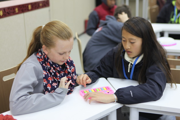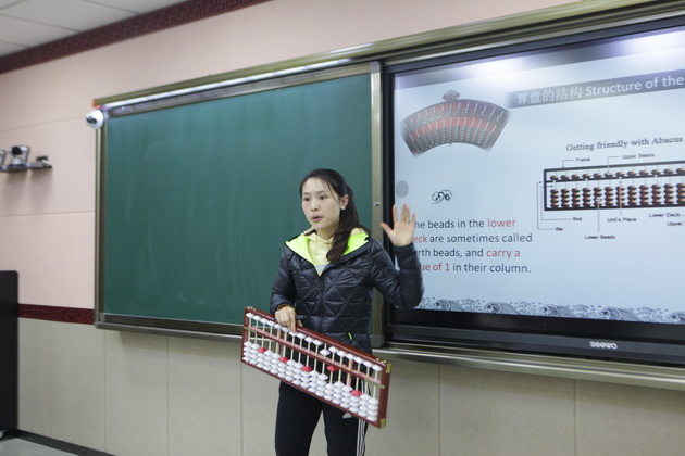 曲江一中梁瑞静老师为美国尤方玉屏学校学生讲授《珠算》